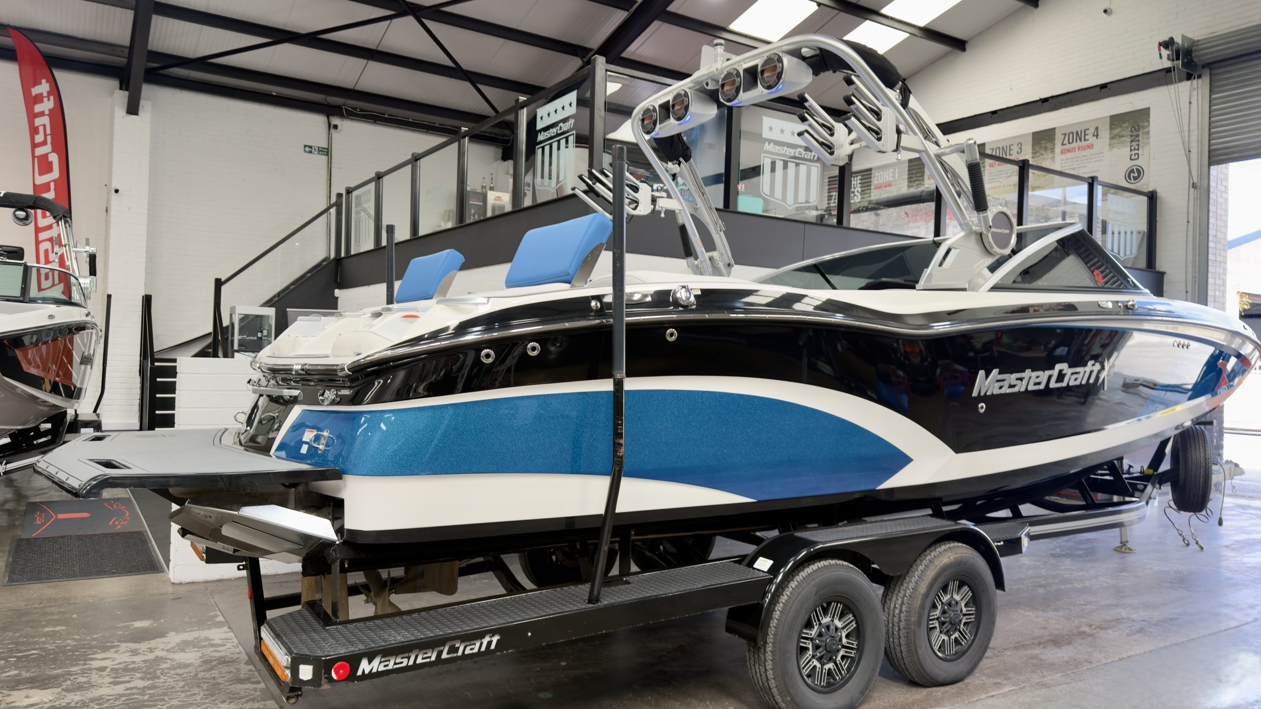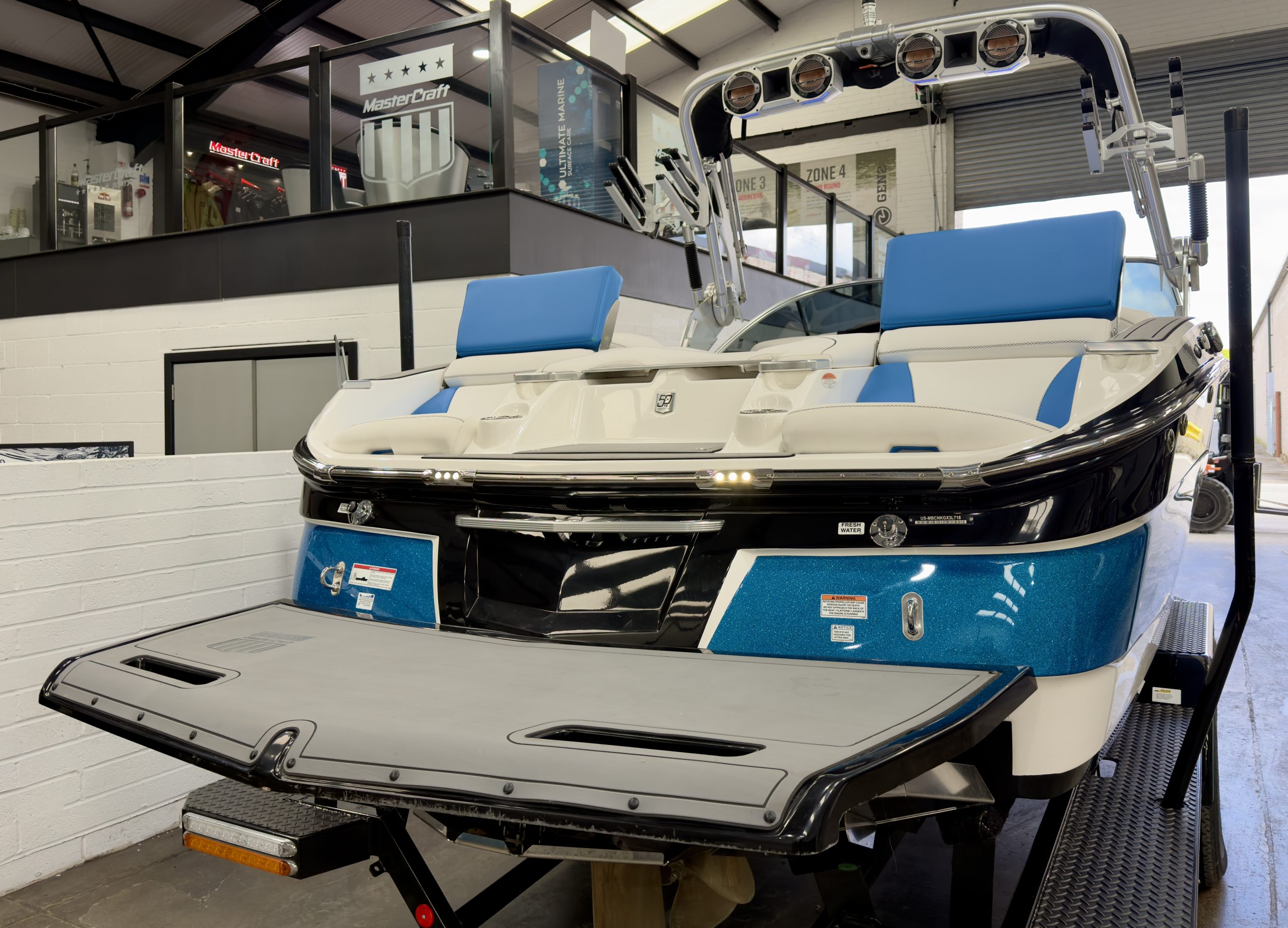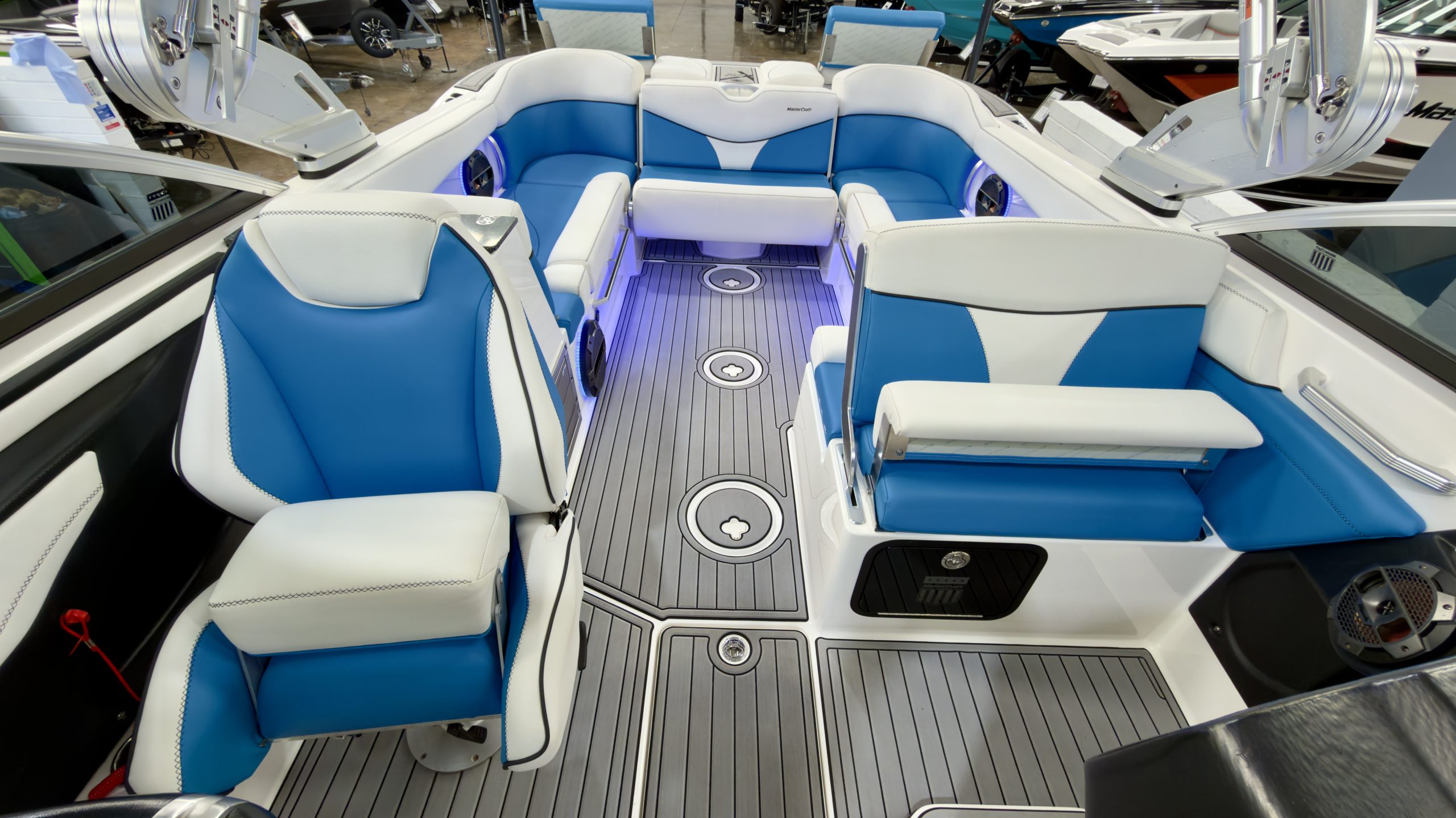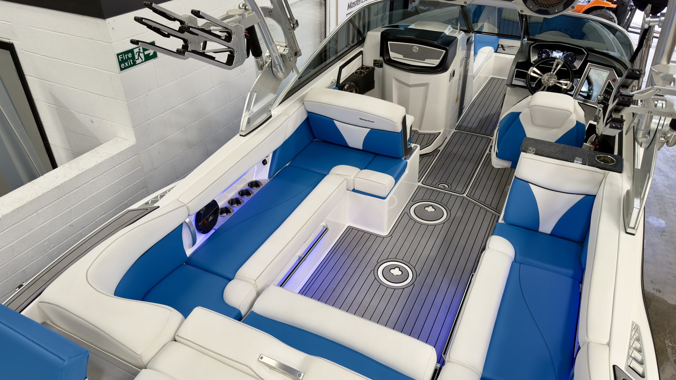 BOW THRUSTER TOILET SINK SEADEK EUROPEAN PACKAGE COMFORT AND CONVENIENCE PACKAGE GEN2 SURF SYSTEM DOCKSTAR HANDLING SYSTEM TRIPPLE BALLAST SYSTEM WAKE SURF RACKS PREMIUM AUDIO AND DUAL SCREEN PACKAGE BLUE SPEAKER LIGHTS BLUE UNDERWATER LIGHTS REFRIDGERATOR CONVERTIBLE REAR SEAT TRANSOM LOUNGE SEATS HEAD AND WETBAR BATTERY CHARGER£159,995